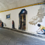 Così la sua ricerca pittorica arriva alla riproduzione dei meccanismi di scomposizione e dissoluzione dell’immagine reale in pixel tipici del virtuale digitale, nel desiderio di conciliare i tempi lunghi e riflessivi della pittura con quelli frenetici della realtà contemporanea. Una ricerca che si sviluppa in studio e in arte urbana. E’ infatti molto influenzato dall’arte urbana, dai graffiti, e soprattutto da come la pittura possa evolversi nello spazio. Nella sua indagine i pixel sono gli atomi di una nuova materia telematica e inconsistente, sono i pigmenti di una pittura che si veste di contemporaneo, sono un modo per avvicinarsi alle cose e per avvicinarsi alla storia. Il suo lavoro si sviluppa in un procedere complesso, che mette la citta’ al centro di un dispositivo di intelligenza connettiva in grado di collegare e far dialogare lo spazio tra cielo e terra alla dimensione digitale aprendo di fatto un nuovo spazio teorico all’interno del quale organizzare le informazioni spostando l’attenzione dai movimenti ai procedimenti. Le risultanti del rapporto virtuoso tradizione-innovazione e’ palese nel lavoro di Ligama quando giustappone pixel su vedute novecentesche ad olio, quando realizza panorami digitali di osservazioni figurative, quando dipinge il suono, raccogliendo i dati scientifici con in quali elaborare una teoria del colore in co-creazione con un algoritmo di intelligenza artificiale, quando installa un ciclo continuato di immagini temporanee private attraverso il recupero di macchine obsolete, quando rappresenta il panorama urbano utilizzando la pittura tradizionale per supplire all’immaterialita’ della fotografia ai tempi di internet e al deserto digitale che si sta portando dietro, cristallizzando in pittura immagini della citta’ che siamo abituati a vedere in foto, che nessuno stampa piu’. Ligama mette il suo talento artistico in dialogo con un’intelligenza multidisciplinare per attraversare indenne i paradigmi dei linguaggi visivi creando un’immaginario composito in grado di opporsi all’immensa forza della globalizzazione illuminando di luce nuova (e rinnovabile) le infinte specificita’ dei luoghi. (Stefano Antonelli)